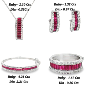 Ruby and White Diamond Pendant, Earrings, Ring and Bracelet – 15019,15022,15020,15021